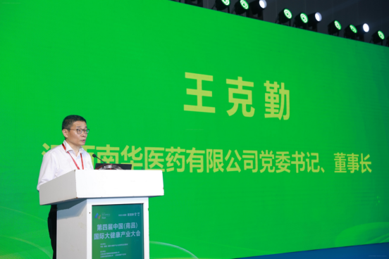▲江西南華醫(yī)藥有限公司黨委書記、董事長王克勤給大會(huì)致辭